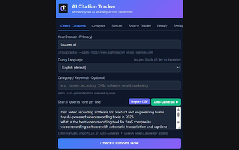 AI Citation Tracker เป็นส่วนเสริม Chrome ฟรีที่ออกแบบมาเพื่อช่วยผู้เชี่ยวชาญด้าน SEO และ GEO, นักการตลาดเนื้อหา, และผู้จัดการแบรนด์ในการติดตามการอ้างอิงที่สร้างขึ้นโดย AI ของเนื้อหาของพวกเขา เครื่องมือนี้ติดตามการกล่าวถึงในแพลตฟอร์ม AI ที่โดดเด่นเช่น ChatGPT, Claude, Gemini, และ Perplexity โดยให้ข้อมูลเชิงลึกที่สำคัญเกี่ยวกับวิธีและเมื่อใดที่เนื้อหาถูกอ้างอิง ด้วยฟีเจอร์เช่นการติดตาม GEO และการติดตาม URL แหล่งที่มา ผู้ใช้สามารถมั่นใจในความสามารถในการมองเห็นของพวกเขาในภูมิทัศน์การค้นหาที่ขับเคลื่อนด้วย AI ที่กำลังพัฒนาอยู่